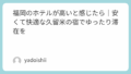 こんにちは。「宿いしい」のブログをご覧いただきありがとうございます。